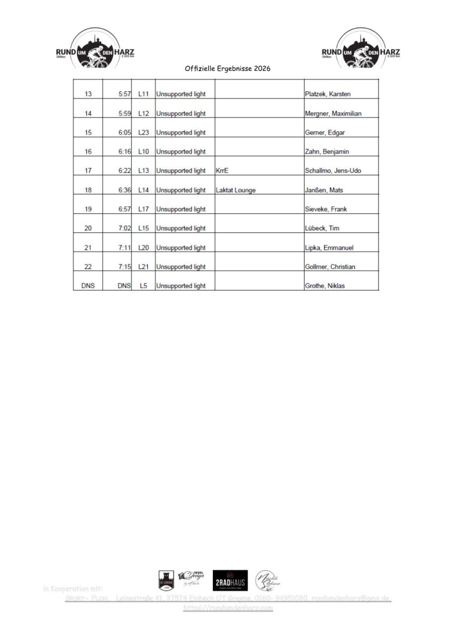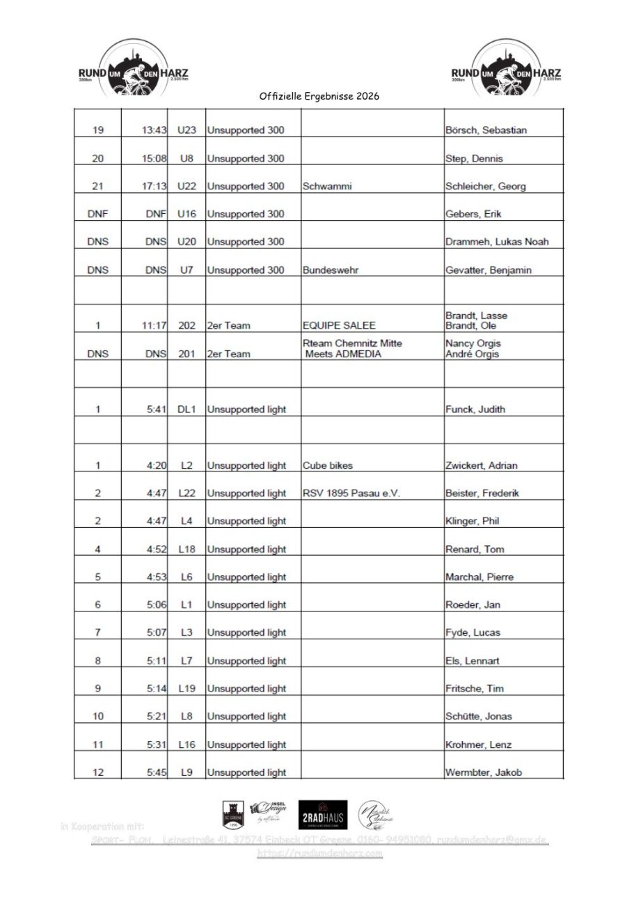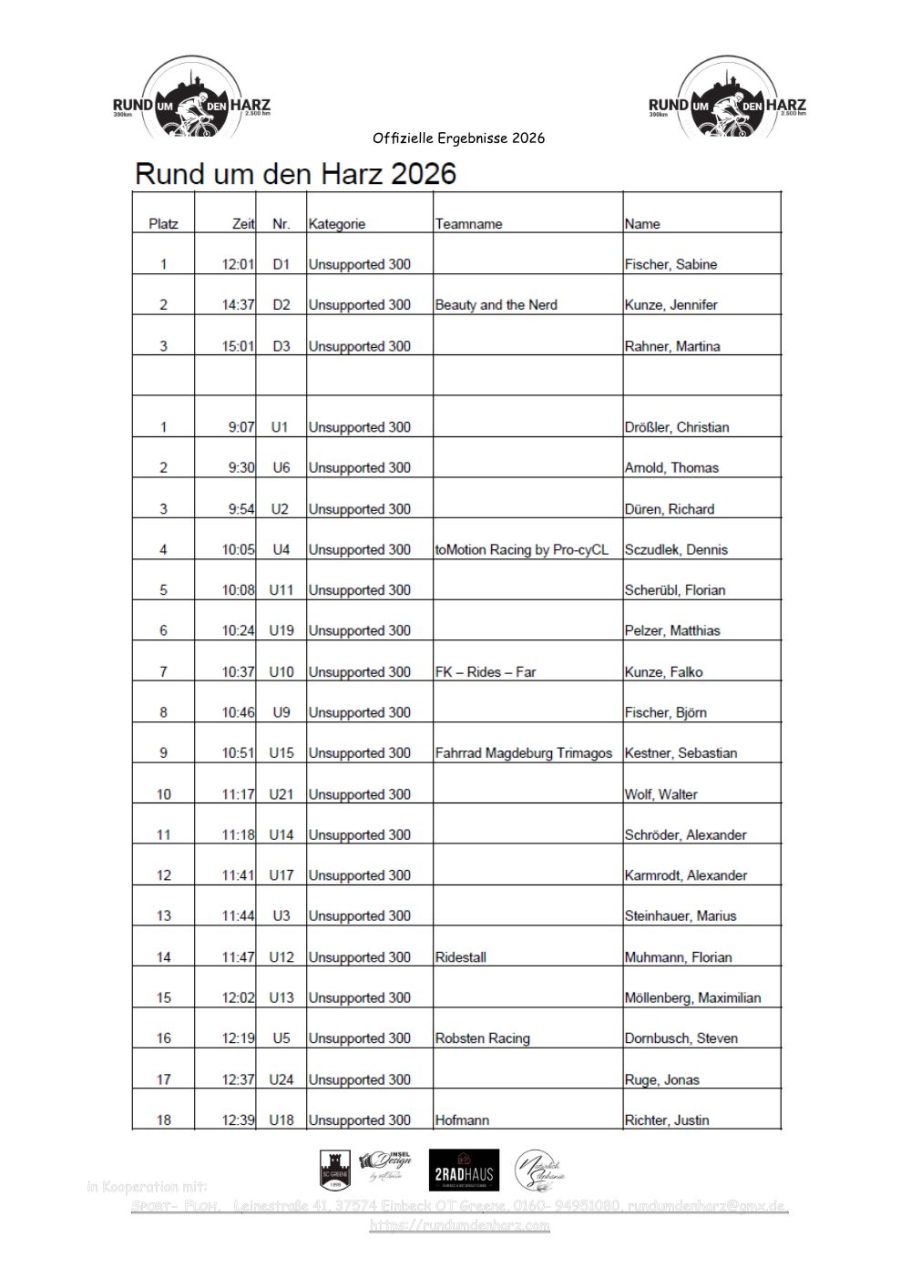 Ergebnisse Rund um den Harz 2026